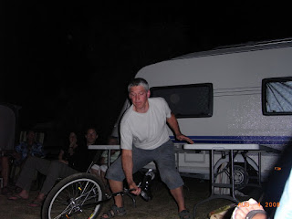 Had a bit of a social with a few of the summer residents of the campsite last night with wine, beer and a bbq. Of course the young ones had to learn a new trick and first was the uni cycle which only the old gits could master then came the back flips that only Miles could do with the help from Fabien who used to be French junior gymnastic champion or something like.